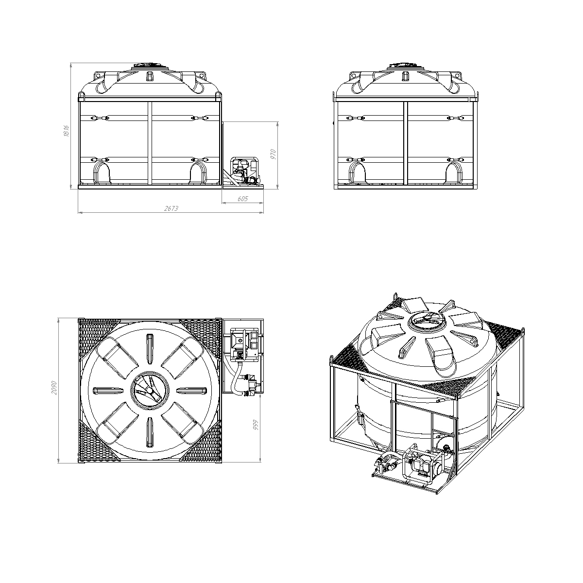 Вмещает 1-3 шт IBC контейнера (еврокуб).